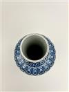 CHINESE BLUE AND WHITE PORCELAIN VASE. Flaring base with cylindrical neck. Square reign under base - H: 13 in.Estimate $150-250