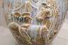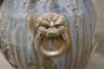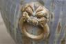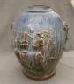 CHINESE BLUE DRIP-GLAZE POTTERY OVOID JAR Relief decoration of horses in landscape; integrated fu lion-and-mask handles H: 16 3/4 in. $100-150