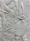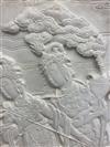 CHINESE CARVED RELIEF FRIEZE OF IMMORTALS, 20th Century. Chinese carved marble panel depicting possibly these two immortals: "Lan Caihe" (who is often shown as a young boy or girl carrying a bamboo flower basket) and "He Xiangu" (who is usually shows carrying a magical lotus blossom). Note: The weight of this item is approximately 300 lbs. - 48 x 31 inches (thickness of marble is 2.5 inches). Estimate $1,500-2,500