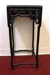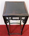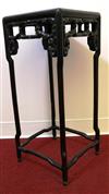 CHINESE CARVED ROSEWOOD SQUARE TOP TABOURET, 19th century. Pierced and carved apron/shaped circular legs joined by shaped box stretcher - H: 26 1/2 in.; top, 11 5/8 in. square.Estimate $150-250