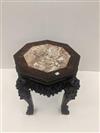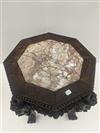 CHINESE CARVED TEAKWOOD TABOURET WITH MARBLE-INSET OCTAGONAL TOP. 19th century. - H: 18 1/2 in.; top, 15 3/4 in.Estimate $200-300