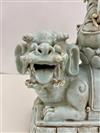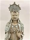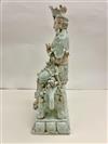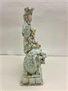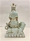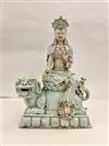 CHINESE CELADON GLAZED PORCELAIN FIGURE MODELED AS GODDESS ASTRIDE MYTHICAL BEAST. - H: 19 in.Estimate $300-400