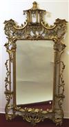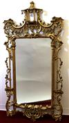 CHINESE CHIPPENDALE GILT-WOOD AND COMPOSITION WALL MIRROR. Pagoda crest; pierced sides - H: 60 in.; W: 31 in.Estimate $200-300