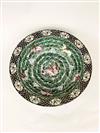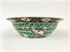 CHINESE FAMILLE ROSE PORCELAIN BASIN. Interior and exterior decorated with animals on green ground with border of floral reserves. - D; 16.Estimate $150-250
