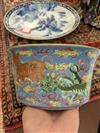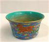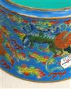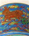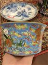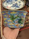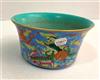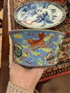 CHINESE FAMILLE ROSE PORCELAIN FLARING DISH. Dragon and fu lion amidst cloud banks on sky blue ground. D: 7 1/4 in.Estimate $100-150