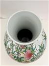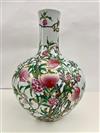 CHINESE FAMILLE ROSE PORCELAIN LARGE BOTTLE VASE . Overall decoration of flowering branches with peaches and bats. - H: 21 in.Estimate $250-350