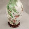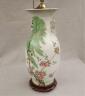 CHINESE FAMILLE VERTE BALUSTER-FORM VASE MOUNTED AS TABLE LAMP 19th century Decoration of birds perched in flowering branches; carved teakwood stand. Vase, H: 17 in. $250-350