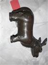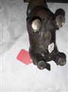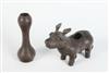 CHINESE FU-DOG-FORM CENSER WITH GOLD INLAID HIGHLIGHTS AND BRONZE DOUBLE-GOURD SHAPED VASE. 19th century. - Fu dog, L: 7 in. Vase, H: 5 3/4 in.Estimate $400-600