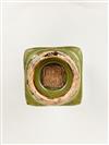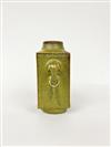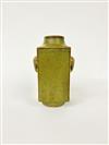 CHINESE TEA DUST GLAZE PORCELAIN CONG-SHAPE VASE. Projecting elephant-head handles; ring foot. - H: 5 1/2".Estimate $150-250