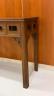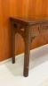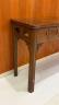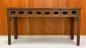 CHINESE TEAKWOOD FOLD-TOP CONSOLE TABLE Rectangular top with rounded corners over pierced, paneled apron; molded legs H: 41 in. (folded). W: 78 in. D: 22 1/2 in. (folded) $500-700