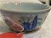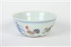 CHINESE UNDERGLAZE BLUE AND POLYCHROME DECORATED TEABOWL. Roosters in landscape - D: 3 1/4 in.Estimate $75-125