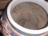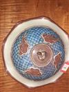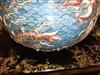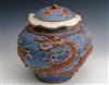 CHINESE UNDERGLAZE BLUE AND RUST RED GLOBULAR PORCELAIN JAR WITH HIGH RELIEF. 20th century. Applied writhing dragon decoration. Lift cover with undulating edge. H: 14 in. D: 14 in.Estimate $300-500