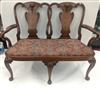 CHIPPENDALE-STYLE CARVED MAHOGANY TWO-SEAT, OPEN-ARM SETTEE. Vasiform splats with shell carving; fabric covered slip seat - W; 48 in.Estimate $150-250