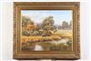CHRISTINE GRAEFE DREWYER (American, 20th Century). LANDSCAPE WITH STREAM AND MOUNTAINS. Oil on canvas. Signed lower right hand side. Framed. Christine Graefe Drewyer is a Signature member of American Women Artists (AWA), the Immediate Past President and Master, Signature, Emeritus member of The Women Artists of the West (WAOW), Signature member of National Oil & Acrylic Painters Society and a member of The Washington Society of Landscape Painters. Christine is a Board member of both AWA and WAOW. - 24 x 30 in; frame: 33 x 39 in. Estimate $400-600