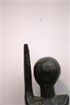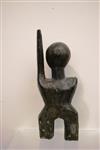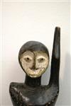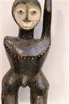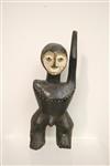 CONGOLESE STANDING MALE WOODEN FIGURE WITH ARM RAISED, Early-to-mid 20th century. Lega People wooden white-face statue with an arm raised above the head show that a conflict has been settled; these statues are called "kasangala." Patinated and decorated. - Height: 13 inches. Estimate $80-120