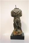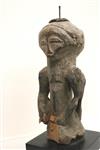CONGOLESE WOODEN DOUBLE HEADED JANUS FIGURE, Mid-to-early 20th century. Janus wooden figure likely carved in Congo by the Ngbaka ethnic group. Presented on a museum quality base. - Height: 9.25 in; base: 1 in.Estimate $200-300