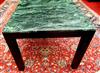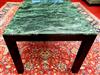 CONTEMPORARY DINING TABLE WITH MOTTLED GREEN MARBLE TOP. Over ebonized base with square legs. H: 30 in.; top, 72 in. x 36 in.Estimate $250-350