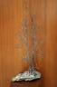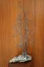 CONTEMPORARY ILLUMINATED WIREWORK SCULPTURE OF TABLETOP TREE Signed on "rock" panel affixed to rockery base. Displayed on squared wood floor model pedestal, H: 30 in. H: 30 1/2 in. $200-300