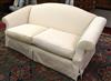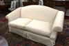 CONTEMPORARY JOSE GONCALVES DESIGNER CUSTOM-MADE ALL-UPHOLSTERED TWO-CUSHION SOFA. Domed back; out-stretched arms; cream color; subtle stripe upholstery - L: 78 in.Estimate $200-300