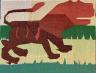 CONTEMPORARY TAPESTRY DEPICTING LION WOVEN BY IDA REINGOLD 20th century Palette of greens and reds worked in various patterns. Mounted on wooden stretchers App. 36 1/2 in. x 48 in. $150-250