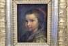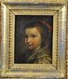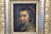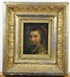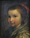 CONTINENTAL SCHOOL (19th century). Girl wearing a Silk Dress, Oil on board. Unsigned. Framed. - 5 x 4 inches; frame: 11 x 10 inchesEstimate $200-300