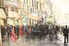 CONTINENTAL SCHOOL (20th century). Parisian Crowds, Oil on canvas. Unsigned. Framed. - 25 x 48 inches; frame: 28 x 51 inchesEstimate $200-250