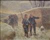 CONTINENTAL SCHOOL (Late 19th Century). Posting the Guard, Oil on canvas. Signed possibly as "A. Balgard" lower left hand corner. Framed. - 8" x 10"; Frame: 15" x 17"Estimate $300-500