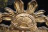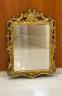 CONTINENTAL STYLE CARVED GILT-WOOD WALL MIRROR Vertical rectangular frame with domed crest and scroll and floral openwork sides H: 45 in. W: 32 in. Inner dimension: app. 23 in. x 29 1/2 in. $200-300