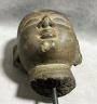 Carved Gauri-Parvati Processional Head Patinated Gauri-Parvati processional carved head. Presented in on a wooden base. Height (including base): 11 inches $500-600