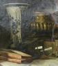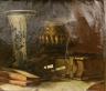 CLASINE NEUMAN Dutch, 1851-1908 Still Life Arrangement of Somber and Classical Objects Oil on canvas. (FOR RESTORATION). Oil on canvas. Signed at base. Verso label (in Dutch) confirms artist's name. Painting presented in a heavily ornate and weathered rococo-style frame. 22 x 18 inches; frame: 30 x 26 inches $300-500