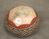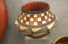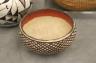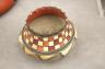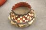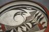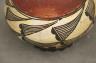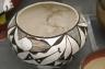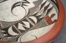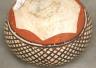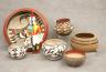 Collection of Seven Southwestern and Native American artifacts, featuring a bowl signed by Hopi artist Marcia Ricky “Ant Woman” 20th century Collection featuring an array of seven traditional Southwestern and Native American artifacts, primarily originating from New Mexico and the surrounding regions. The grouping includes several examples of Pueblo pottery, characterized by distinctive geometric motifs, fine-line hatching, and earth-toned slips such as cream, terracotta, and black. Notable pieces include a large Hopi polychrome platter (signed by Marcia Fritz Ricky who is often better known by her hallmark and Hopi name, “Ant Woman” or “Flying Ant Woman”) and smaller olla jars with traditional stepped and spirit-line designs. Accompanying the ceramics is a hand-carved and brightly painted Kachina (Katsina) doll, a ceremonial figure representing spiritual beings in Hopi and Zuni cultures, and a finely coiled woven basket, likely of Apache or Tohono O’odham origin. $150-200