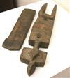 MALIAN DOGON GRANARY CARVED WOODEN DOOR LOCK , Mid 20th Century. Patinated tribal Bambara carved wood door lock with a carved crosspiece. The door lock and crosspiece are not matched. There is signs of usage and handling. - Overall length: 18". Estimate $60-80