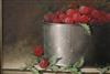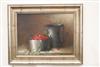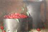 DONALD F. ALLAN (American, 1927 - 2013). Strawberries, 1987, Oil on board. Signed and dated lower right corner. Framed. - 12" x 16"; Frame 16.5" x 20.5"Estimate $250-350