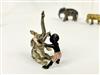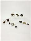EIGHT AUSTRIAN BRONZE MINIATURE ELEPHANTS, ONE SILVER, AND THREE PAINTED COLD-CAST BRONZE GROUPS OF BLACK BOYS WITH ELEPHANTS. Largest, L: 2 1/2 in.Estimate $300-400