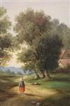 ENGLISH SCHOOL (19th Century). Woman with a Red Skirt, Oil on board. Unsigned. Framed. - 9.5" x 7.5"; Frame: 14" x 12"Estimate $250-350