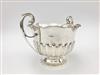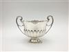 ENGLISH SILVER TWO-HANDLE BOWL. made Sheffield. Serpentine top edge spaced with pierced leaf motif; stop-fluted lower portion' molded pedestal foot H: 7 5/8 in. D: 8 in. Wt. 28.6 troy oz. Property from the Estate of Erich G. Holzapfel, Washington, DC Estimate $300-400