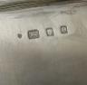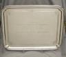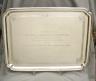 ENGLISH STERLING SILVER RECTANGULAR SERVING TRAY Made London, 1929, by EB Lmtd Molded edge with shaped corners, and conforming shaped feet; inner border decoration with cartouche corners centers engraving block lettering reading, "Presented to/The Honorable Selwa Roosevelt/With Our Thanks for Your/Friendship and Excellent Work/From/The Ambassadors of the Arab Countries/February 18, 1989" 15 1/8 in. x 20 in. Wt. 96.6 troy oz. $6,000-8,000