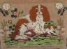 ENGLISH VICTORIAN NEEDLEPOINT PANEL DEPICTING KING CHARLES SPANIEL AND PUP WORKED BY ELLEN BANNAN, DATED 1876 19th century Dog and pup set in lush background worked in various shades of green and surrounded by various flowers. "Ellen Bannan Her WK 1876" stitched at bottom. 31 1/2 in x. 25 in. 31 1/2 in x. 25 in $100-200