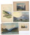FIVE EARLY 20TH CENTURY CONTINENTAL WATERCOLORS. Watercolors on paper with views of Alp towns and lakes. Unframed. - Various sizes; all approx. 6 x 8 inchesEstimate $350-450