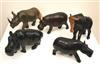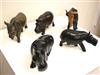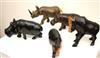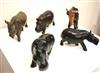 FIVE HAND CARVED GHANIAN DARK WOOD ANIMAL FIGURES. Five carved wooden sculpted animals from Ghana. - Length: Approx. 6"-7.5".Estimate $200-300