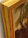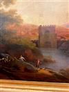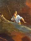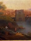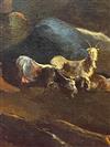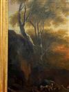 FOLLOWER OF CARLO ANTONIO TAVELLA (Italian, 18th century). Italianate River Landscape with Herdsmen and Goats, Oil on canvas. Unsigned. Framed. - Artwork (excluding frame): 28.5 x 39.5 inches; frame: 35 x 46 inches