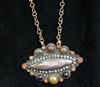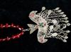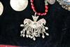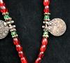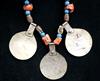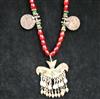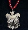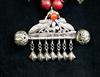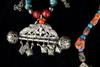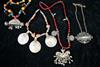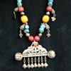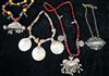 FOUR CENTRAL ASIAN TRIBAL NECKLACES. A collection of four tribal patinated necklaces characterized by their use of mixed materials, including metals, beads, and sometimes stones, and their folk art aesthetic. The styles of the necklaces strongly suggest a Central Asian (such as Afghanistan, Turkmenistan, or Pakistan) or South Asian origin. The necklaces feature strands of colorful beads with large, ornate pendants. $200-300