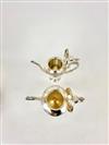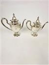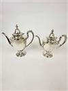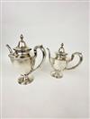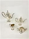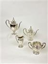 FOUR-PIECE STERLING SILVER COFFEE AND TEA SERVICE, GORHAM CO., EACH PIECE ENGRAVED WITH DEMIHIND MOTIF FROM MENCKEN FAMILY CREST. made in 1929. Urn-form vessels with circular pedestal feet; pots have swan's neck spouts; domed covers. Including coffee pot, tea pot, creamer, and open two-handle sugar bowl. - Coffee pot, H: 11"; wt.: 76.8 troy oz. Estimate $1,000-1,500 PROVENANCE: This silver was presented to journalist and Baltimore Sunday Sun editor H.L. Mencken at the time of his 1930 marriage to Sara Haardt, a German-American novelist and professor, by the A.S. Abell Co. President and publisher of The Baltimore Sun newspapers. It descended to Mencken's brother August, then to William Schmick Sr., the publisher of Baltimore Sun at the time, and then by descent through the Schmick family. See the Mencken family crest can viewed here: https://www.my-coat-of-arms.com/cgi-bin/search.cgi?Surname=Mencken