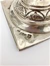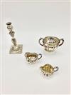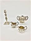 FOUR RUSSIAN SILVER (84-FINE) TABLE ARTICLES: CANDLESTICKS, COVERED SUGAR BOWL, AND TWO CREAMERS, 19th century. All fully and variously hallmarked. Candlestick, H: 11 in Wt. 40 troy oz. Property from the Estate of Erich G. Holzapfel, Washington, DC Estimate $800-1,200