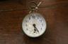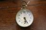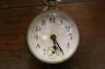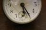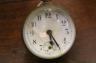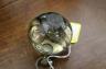 FRENCH BRASS AND GLASS BALL DESK CLOCK. early 20th century. Eight-day clock. White enamel face with black Arabic numerals. (Face cracked). - D: 2 1/2".