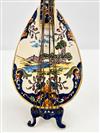 FRENCH HAND-PAINTED CERAMIC FIGURE OF LUTE WITH INTEGRATED STAND . Landscaped floral decoration - H: 12 in.Estimate $50-100