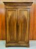 FRENCH LOUIS PHILIPPE-STYLE CABINET Mid 19th Century Ogee-molded cornice over plain frieze above pair sunk-panel doors; brass shield shape escutcheons with key H: 90 in. W: 55 in. D: 22 1/2 in. $150-250