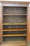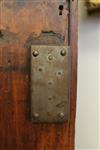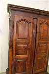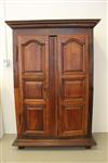 FRENCH PROVINCIAL OAK AND FRUITWOOD TWO-DOME ARMOIRE, 18th century. Flat-molded cornice over pair triple-paneled doors with iron mounts; four interior shelves. - H: 75 in. W: 51 in. D: 22 1/2 in.$350-500