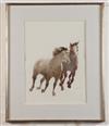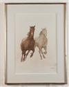 FRENCH SCHOOL (20th Century). Pair of Horse Watercolors, Watercolor on paper. Signed lower right hand. Framed individually. Not examined out of frame. - 16" x 12"; Frame: 23" x 19"; 19" x 14"; Frame: 26" x 20".Estimate $200-300