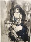 FRENCH SCHOOL (20th century). Seated Dancer, Watercolor and Gouache on paper. Unsigned. Framed. Not examined out of frame. - frame: 9 x 11 inches$80-120